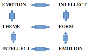 Going down in the chart, as you emotionally interact with a theme, you can then intellectually be stimulated by recognizing that theme. And, as you intellectually interact with the elements of form, you can be emotionally stimulated by their degree of subtlety.