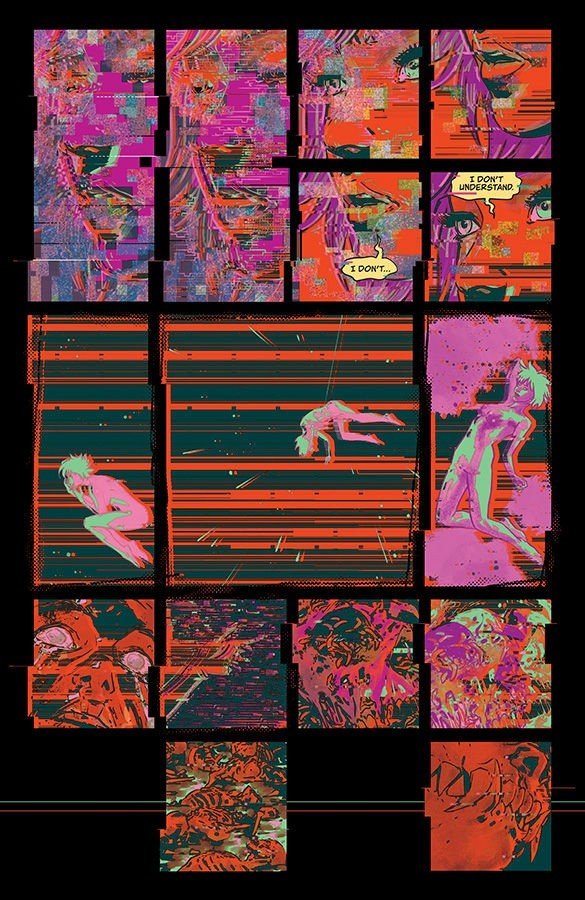 With issue #12 that started to change, with issue #13 it’s clear that this book has gone back to it’s roots (so to speak). We learn more about the history of the girl who would become PH34R, and it’s pretty horrific. What I really love about this issue was how much work the art did in telling the story. The panel layouts an imagery are effective in telling the story, it flows and is captivating. The art is disorienting, immersive and disturbing, I love it.