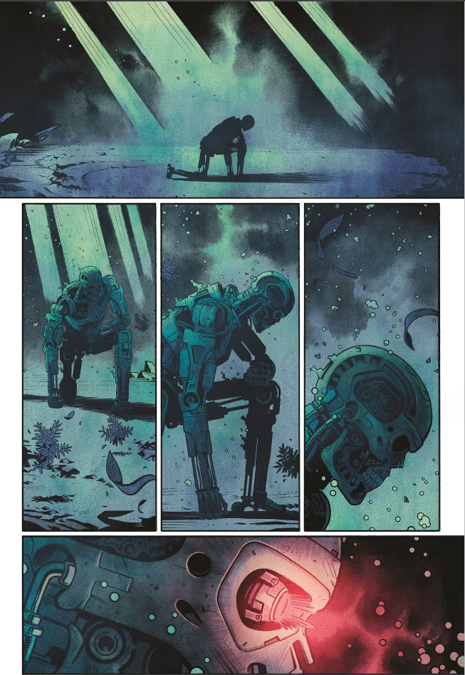Instead of focusing on the Terminator or SkyNet, it focuses on time. Shalvey uses the Terminator as an allegory for the passage of time, aging, love and the inevitability of death. That slow, creeping feeling of what we all know will happen; waiting for the day that death comes knocking on our door. Or in this case, a robot from the future that will stop at nothing to kill us. If you are missing the more grounded and gritty Terminator, this issue is for you.
